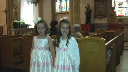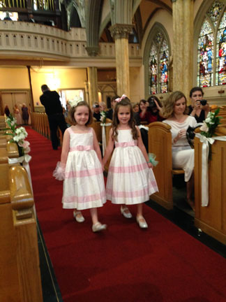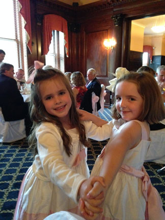 Here comes the bride. Flower girls,Tom's nieces, Niamh & Achlinn. |