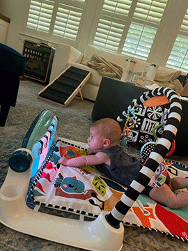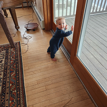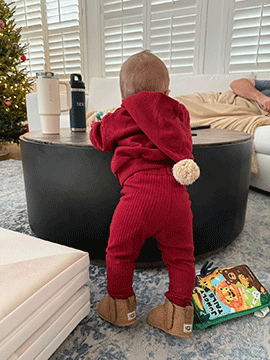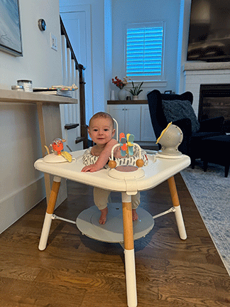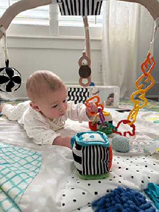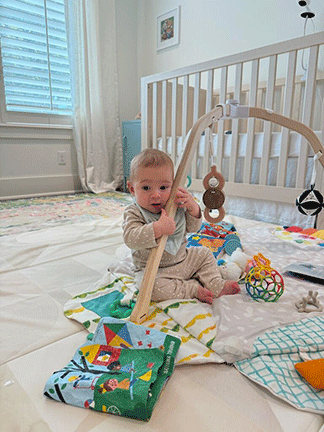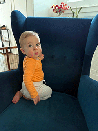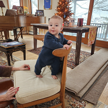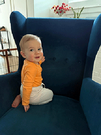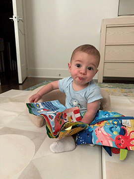 Sitting and doing his best to climb and crawl and read | |