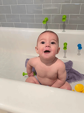 "Here's the happy boy! He loves bath time"! |