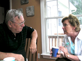 A rainy, rainy, rainy day! This time, though, it seemed a way to match a sadness in the air for classmates we have missed this year. But outside rain brought inside friends. And that makes all the difference. Friends who keep fit, busy, engaged, listening, sharing, living the day. A youthfulness not yet gone away, caused a lively exchange in point-of-view. Shall Reunion '55 be evening or noon? Shall it be a Tuesday or Saturday? We arrived in a shower and left in the rain. But inside it stayed a beautiful day. Dottie has said it in just the right way: We "couldn't have been in a friendlier place." --Bette |